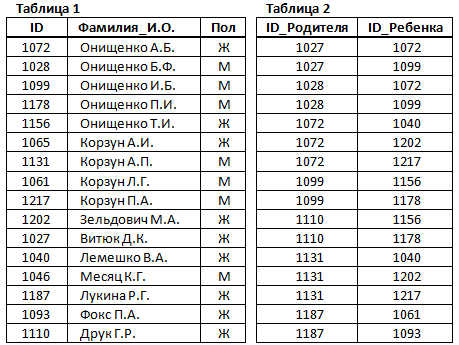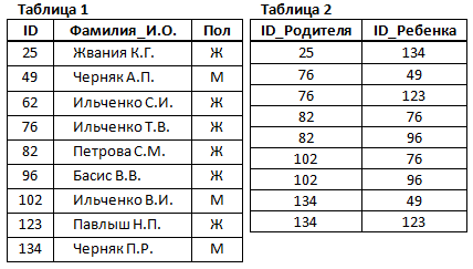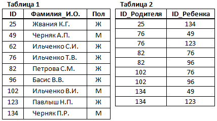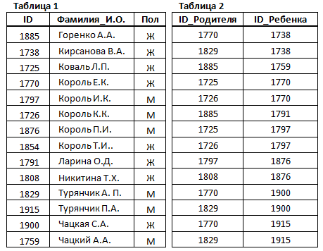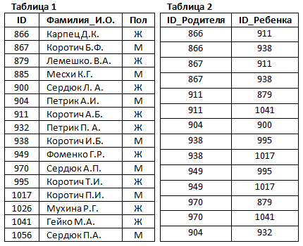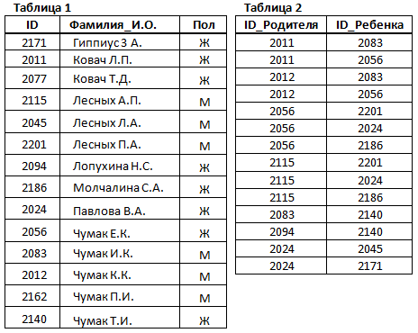 2. В этом фрагменте базы данных представлены сведения о родственных отношениях. На основании приведённых данных определите фамилию и инициалы правнука Чумака К.К.