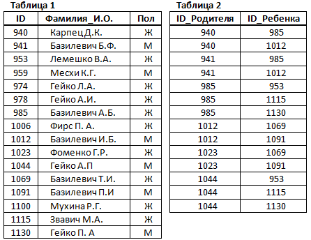 8. В фрагменте базы данных представлены сведения о родственных отношениях. На основании приведённых данных определите фамилию и инициалы бабушки Гейко П.А.