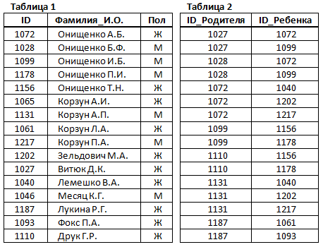 10. В фрагменте базы данных представлены сведения о родственных отношениях. На основании приведённых данных определите фамилию и инициалы дяди Корзуна П.А. (дядя - это родной брат матери или отца).