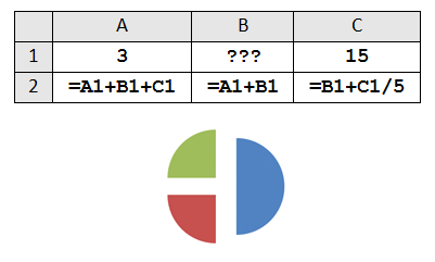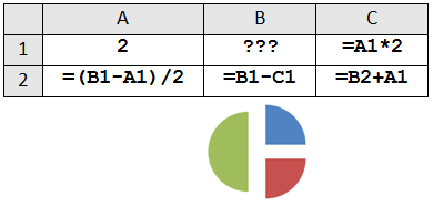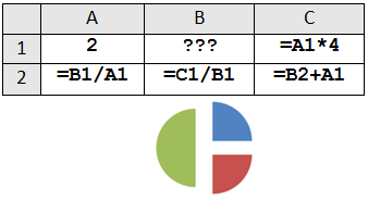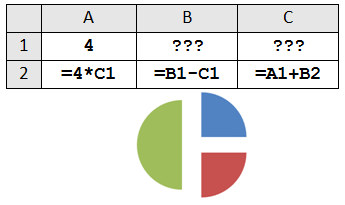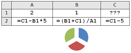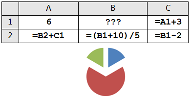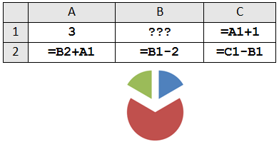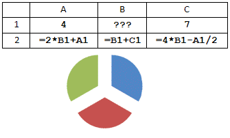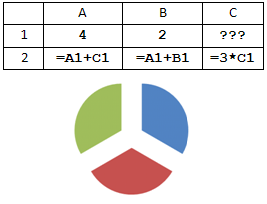 1. Дан фрагмент электронной таблицы. Какое целое число должно быть записано в ячейке B1, чтобы построенная после выполнения вычислений диаграмма по значениям диапазона ячеек A2:С2 соответствовала рисунку? Известно, что все значения диапазона, по которым построена диаграмма, имеют один и тот же знак. |