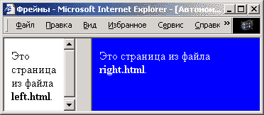 Часто один фрейм используется как оглавление, а другой является рабочей частью.