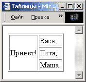 <TD ROWSPAN="3">Привет!</TD>