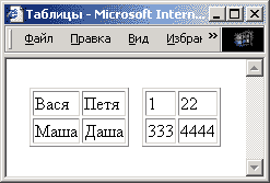 <TR><TD>Вася</TD><TD>Петя</TD></TR>