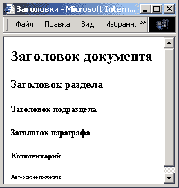 (от английского header), то есть, уровень заголовка изменяется от от 1 до 6.