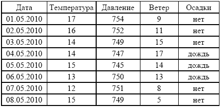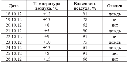 (Осадки = «дождь») и (Температура воздуха, °С < 10)