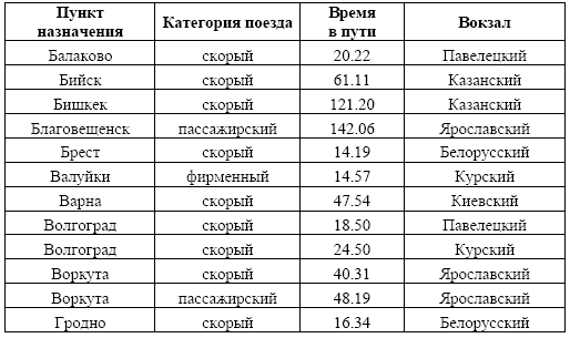 (Категория поезда = «скорый») И (Время в пути > 20.00)?