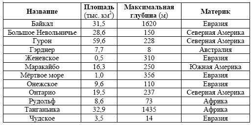 (Материк = «Северная Америка») ИЛИ (Максимальная глубина (м) > 200)?