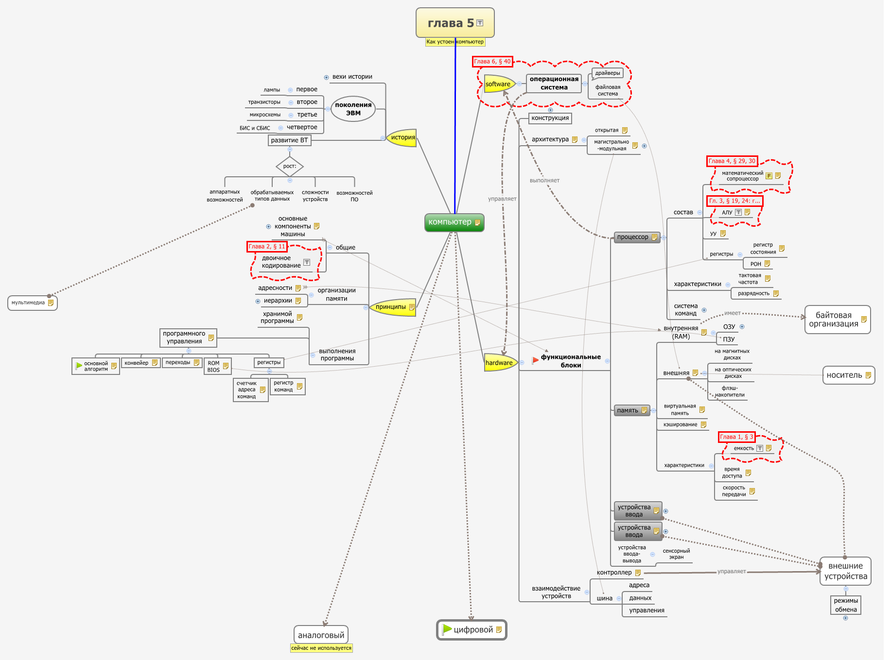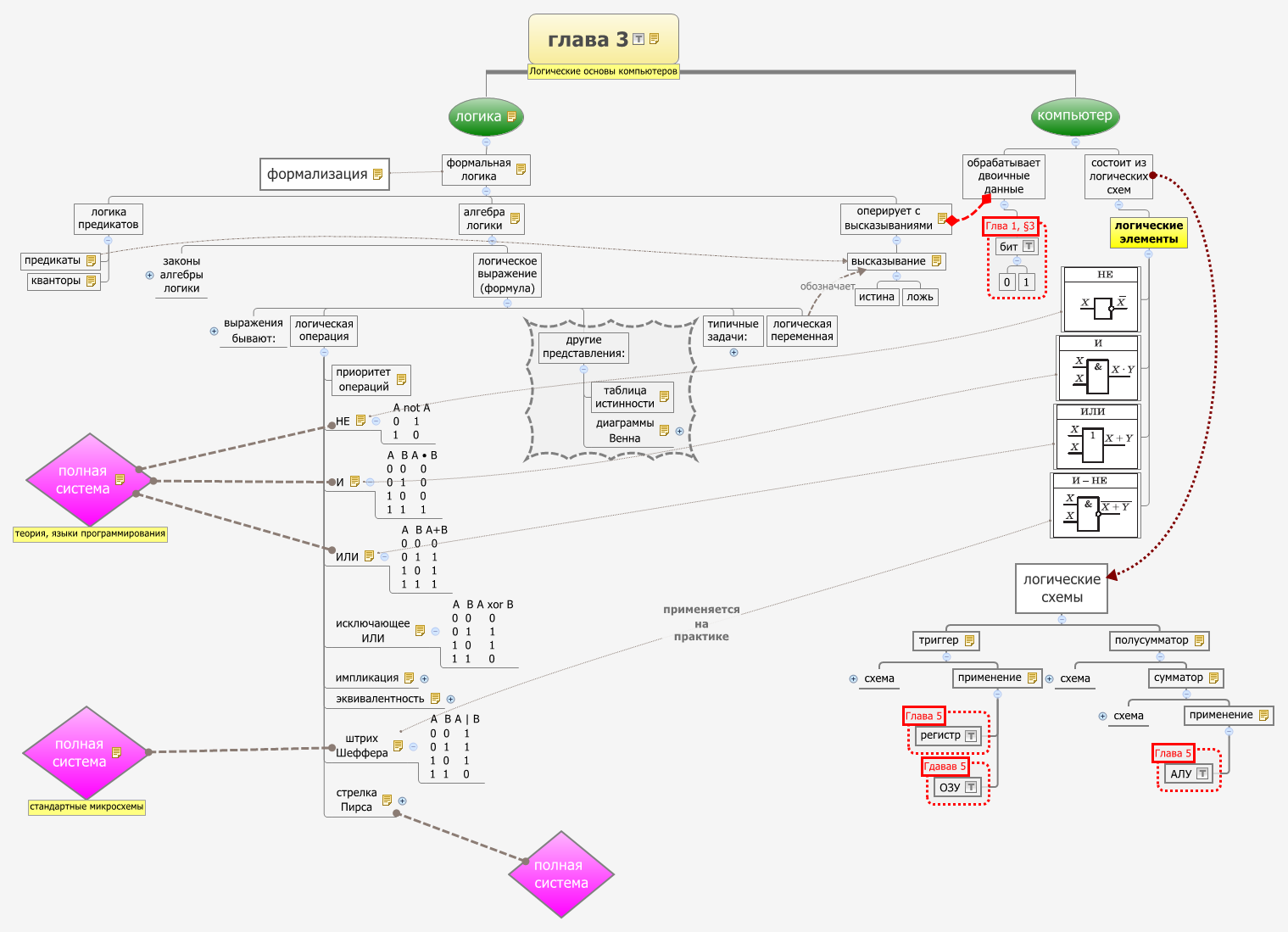 в центре схемы, находится центральная идея. От неё в разные стороны