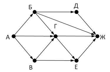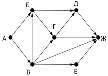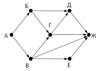7. На рисунке - схема дорог, связывающих города А, Б, В, Г, Д, Е, Ж. По каждой дороге можно двигаться только в одном направлении, указанном стрелкой. Сколько существует различных путей из города А в город Ж?