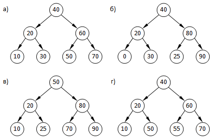 10. Какие деревья, изображённые на рисунке, могут служть деревьями поиска?