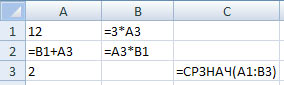 12. Какое значение появится в ячейке С3 при вводе указанных формул?