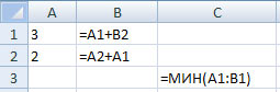 3. Какое значение появится в ячейке С3 при вводе указанных формул?