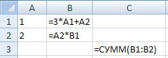 2. Какое значение появится в ячейке С3 при вводе указанных формул?